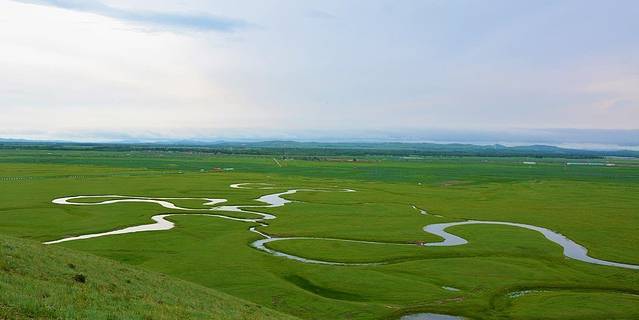 滦河神韵因河流蜿蜒流转、九曲十八弯而得名。看着九曲回折的河流流入草原,草原就像是一张绿色的纸,河水便是墨,大自然在这里挥毫书写下这滦河神韵。