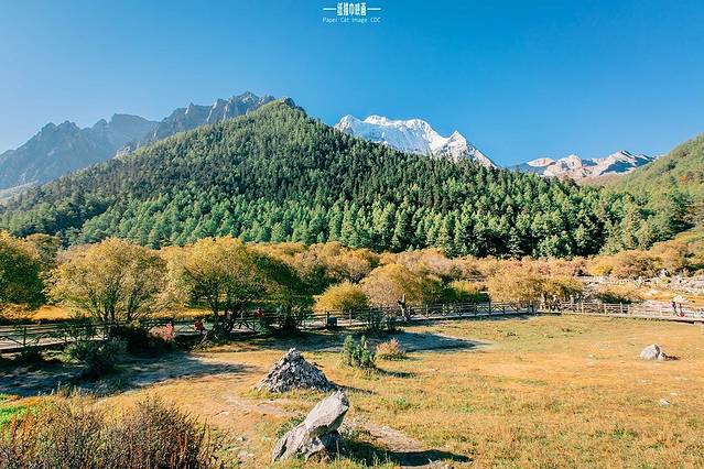 新都桥被称为“摄影家的走廊”。在这里你可以看见一大片的“世外桃源”,无边的草原、金黄色的柏杨、弯弯的小溪还有连绵起伏的山峦等每一处风景,都能挑拨起你那颗想要欣赏美景的心。