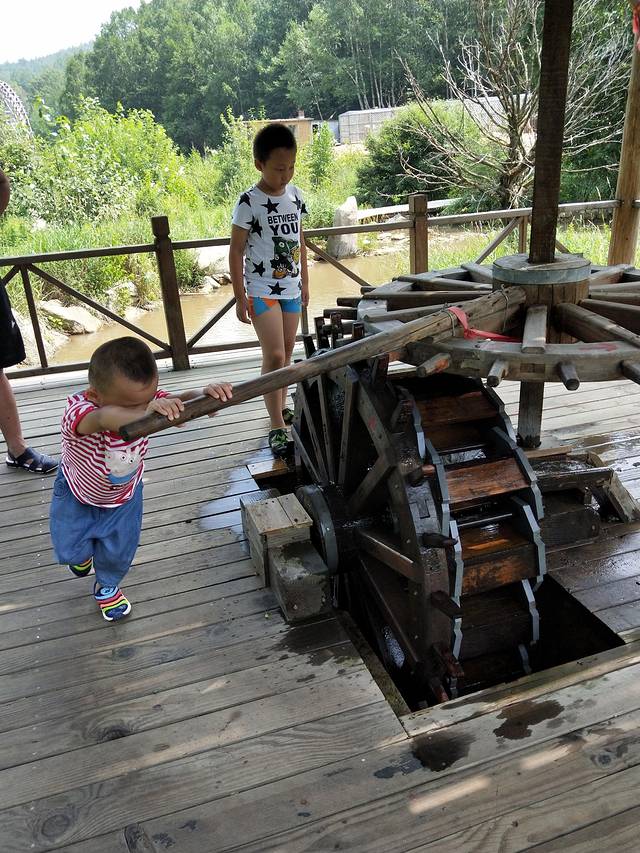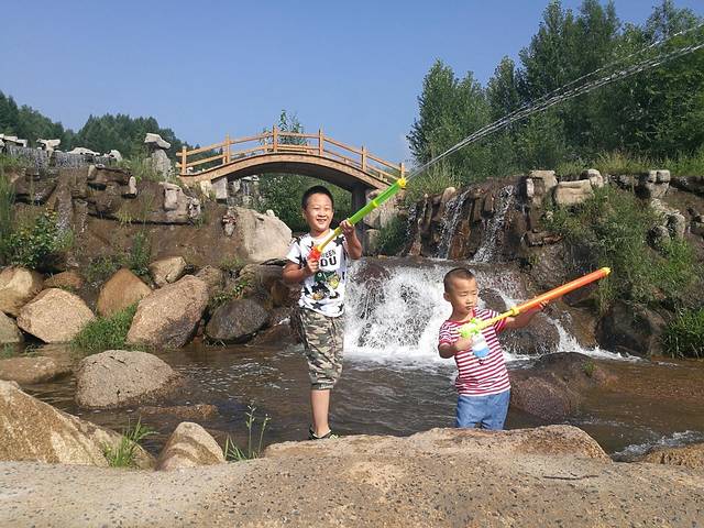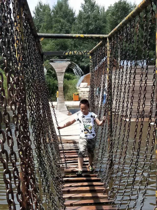 旅行中,俩孩子玩的很开心,高山滑水俩人都觉得很刺激,就是时间太短,估计也就不到2分钟吧;陆地上的游玩项目俩孩子都觉得很好玩;戏水乐园中,我儿子来来回回玩了有2趟,第1趟不小心掉到了水里,所以以后的照片中七分裤就变成小内裤了;最后玩呲水枪玩疯了,很开心但也出现了点小意外,水枪互相进攻,结果小外甥在躲避儿子进攻的时候掉进了水里,裤子湿透了,所以到最后,俩孩子都没有穿原来的裤子!
