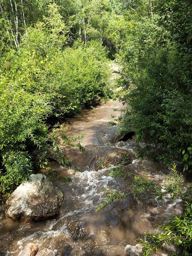 第二天早上,步行到道须沟5分钟左右吧!道须沟位于黑里河自然保护区内,总面积1184公顷。景区内有黑里河穿过,游览的话可以分山线游览和水线游览两种方式,如果水线游览,那你一路上都可以听到潺潺的水声,特别惬意。我们带着两个儿童,所以选择了水线游览,孩爸说一定要观赏云中草原,中途独自爬山上到了云中草原,上山下山大约1小时,而后又陪同我们进行水线游览。(有体力的男同志可以借鉴,云中草原也不错哦!)