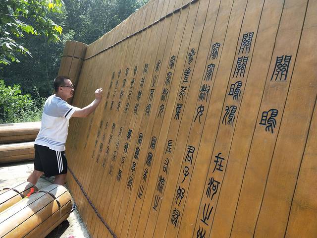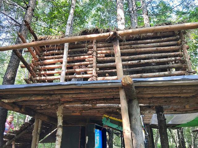 我们首先乘坐景区的观光车到了五棵松。。。,而后往深山处游览,逛进了原始森林,行走在木笺道上,呼吸着富含负氧离子的空气,耳边隐约听得到潺潺的水声,身边有随行的亲人,很开心!!原始森林木笺道旁边有不少稻草房,像是原始人的房屋似的,其中里面没有什么!原始森林深处有原始人表演,当然了,我儿子说“傻子都知道是人扮演的原始人。”