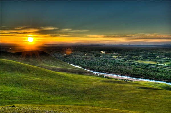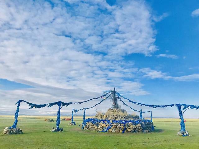 来到成吉思汗拴马桩,能看到一望无际辽阔的大草原。嗯!漂亮!