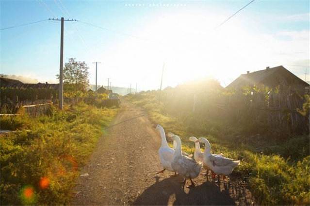在北极村有可爱的大白鹅大白鸭,还有母鸡,呵呵~ 乡村气息浓郁的地方