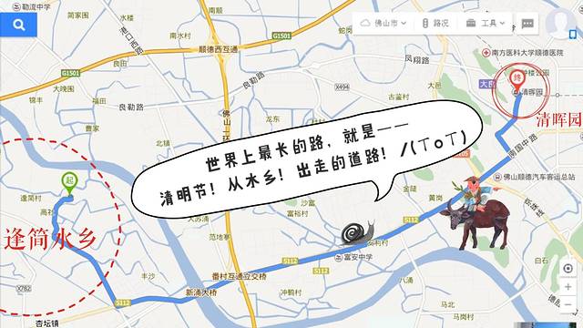 此行目的地: 顺德 逢简水乡——一个后来回想起仍然会馋得流口水、怕得腿发酸的天堂和地狱。
