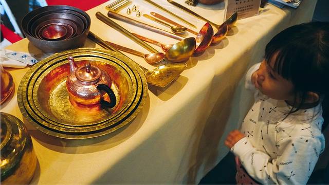 这里是另一项 广州 非遗项目——西关打铜工艺的展示台,小姑娘踮着脚看得目不转睛,显得一旁东瞅瞅西看看的我十分不专心。