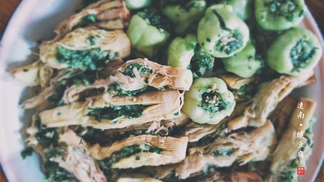 (妈妈和姐姐教我做的酿豆腐,好吃到想咬手指头。)