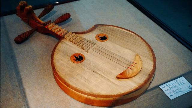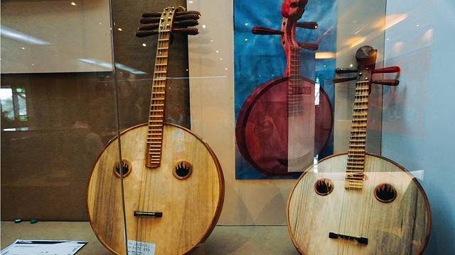 天马行空的时候被乐器声打断,循声跑去二楼,正赶上“ 广州 & 毕节 雅乐集”。这是来自 贵州 毕节 彝族的虎头月琴,传承人安荣发亲手做的。