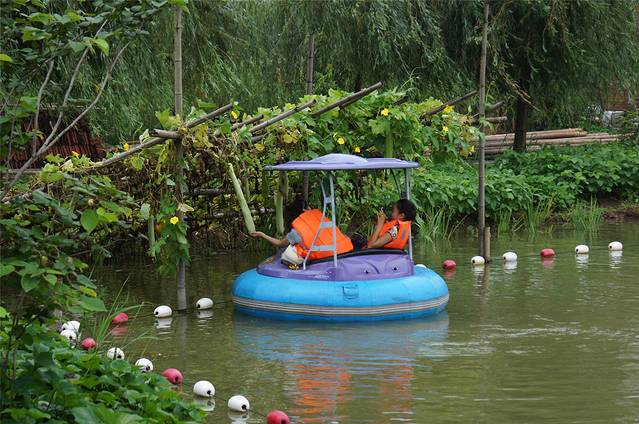 在迷宫中探路探累了,我们干脆让船顺水漂流,享受这夏日芦荡的种种妙处。