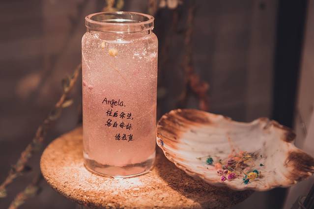 我给自己的艺心瓶设计的是比较简约风格的,以彩色的粉末均为混在玻璃胶内为底,再镶嵌上一块碎玻璃。准备好所有的原材料之后,就可以开始制作啦~制作其实还蛮简单的,如果有遇到技术问题的话,店长也会热情的来帮你。