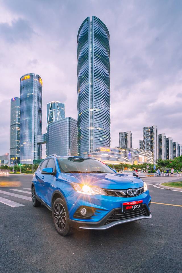 在双子塔夜色的衬托下,东南DX3前包围运用更多的硬朗线条,勾勒出更强的层次感,让人感觉到十分的大方气派。