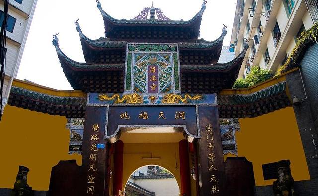 第二天我们想去体验下重庆的古城特色,特意搜寻了下这里的各个古建筑,我们是从人民公园开始游览,看了下几个老银行建筑群,途径重庆大轰炸惨案遗址,又看了重庆新华日报旧址。有趣的是,我们在中华路上,看到了一家庙宇,女朋友兴趣很高地进去求了个平安符,美其名曰寻求本地神仙的保佑。后来又在乱逛的时候遇见了罗汉寺,那里还免费提供小香烛,女朋友还悄悄夸他们地道。