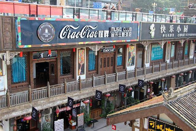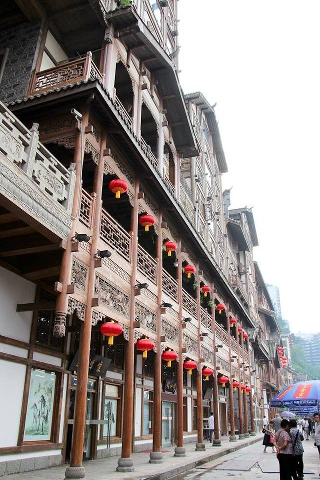 解放碑碑旁边有家新华书店,我们在里面吹空调看书,一直待到下午两点多,又去对面的国泰艺术中心逛了一个多小时,等到外面紫外线没那么强之后才开始走出去。女朋友迫不及待想去洪崖洞看看,下午四点的重庆真的非常热,室外温度37°,地面都像个烧烤架,感觉腿毛都要熟了。洪崖洞外面人就少了,大家都跑到建筑里面去逛,都是些卖特产和饰品之类的店铺,和其他城市的差别不太大,应该卖的是城市情怀吧。