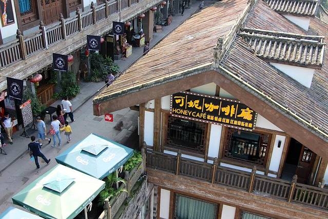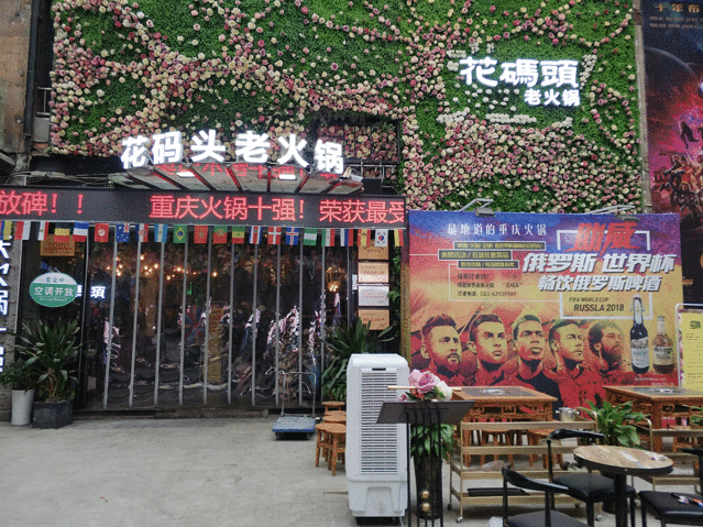 我们定的酒店在日月光广场后面,从索道原路返回之后,就回到酒店去稍微修整了下,晚上直接去了对面的得意世界。经过女朋友的千挑万选,选了一家叫花码头的老火锅店,说实在的,看到那家店的第一眼,我还以为走错了。原本以为搞这么多噱头的火锅店肯定味道不咋地,结果大大出乎我的意料,里面环境美和服务态度好是一个特点,能把我嘴刁的女朋友吃得两眼冒光,我也是很服气的了。