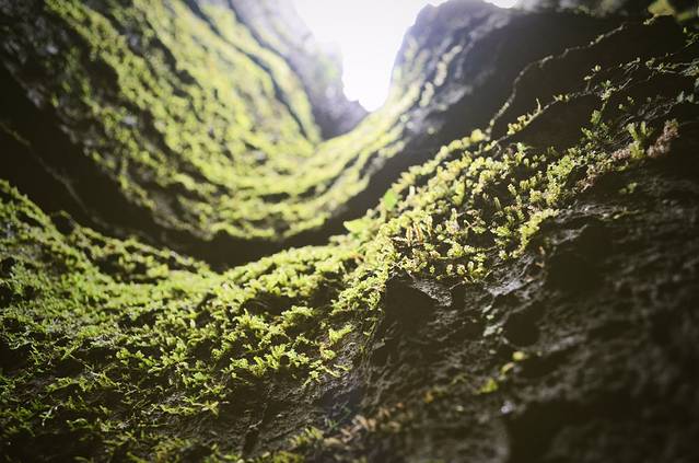 相比起高耸的大峡谷,深入地下的地缝就要显得“绿色”很多。岩壁上布满了茂密的植被,看上去特别清凉,因为阳光直射进来的时间短,所以体感也很清凉。夏天时,地缝的温度比空调房里不要舒适太多。
