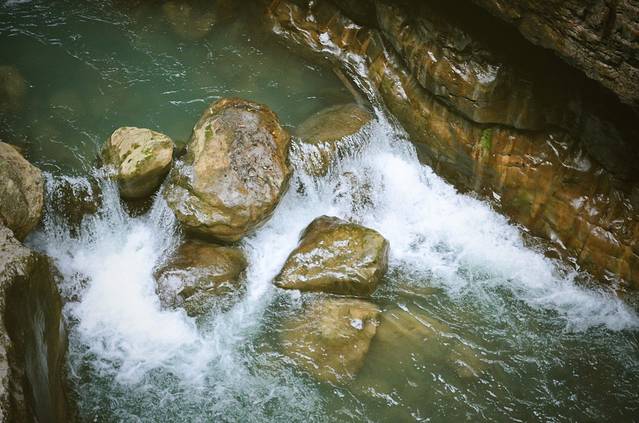 地缝的最低端是一条小河,里面对切着不少乱石,因为长年的流水冲刷,都被磨得很圆润。