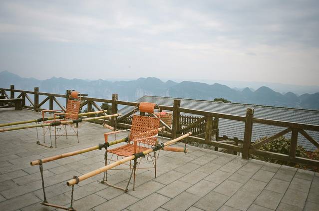 如果不想走,山上也有挑夫能让人感受一下刺激的滑竿。