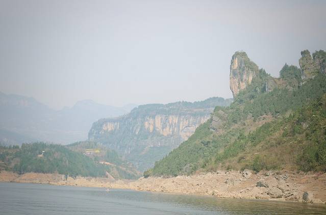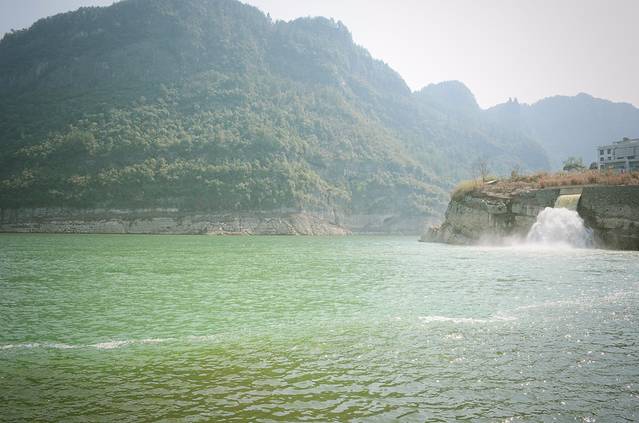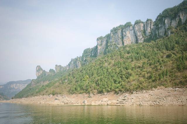 返程的时候终于特意拍了一张瀑布的照片,其实这一段就是千瀑峡,据说有大小瀑布成百上千条。当然,这个季节还处在枯水期看不到那么多瀑布,但是每到夏季,这一段航程两岸的瀑布多到令人眼花缭乱,目不暇接。