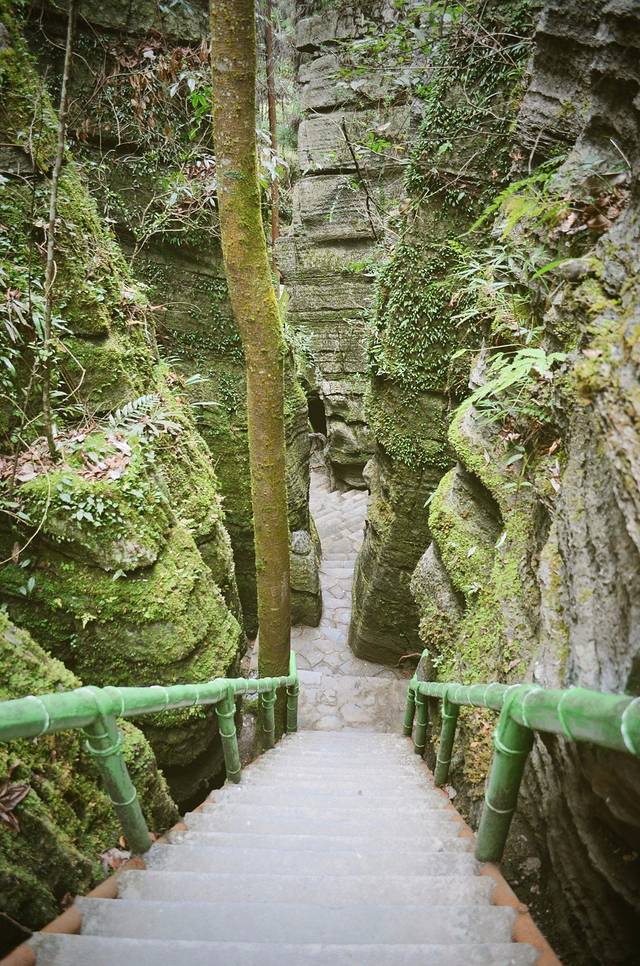梭布垭 石林 拥有比较茂密的植被,不是刻板印象中只有石头的 石林 。这里的很多岩石上都长满了苔藓地衣等,还有很多参天 大树 。身处 石林 中,更觉得像在一座绿色迷宫里的感觉。