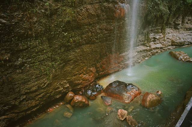 地缝里时不时就能遇见从地面上倾泻而下的瀑布,涓涓细流冲下近百米的落差后,也变得有些汹涌澎湃了。可惜我们下到地缝的时间已经是太阳快下山的午后,没有赶上有阳光能直射进来的时候,不然是可以见到漂亮额彩虹的。