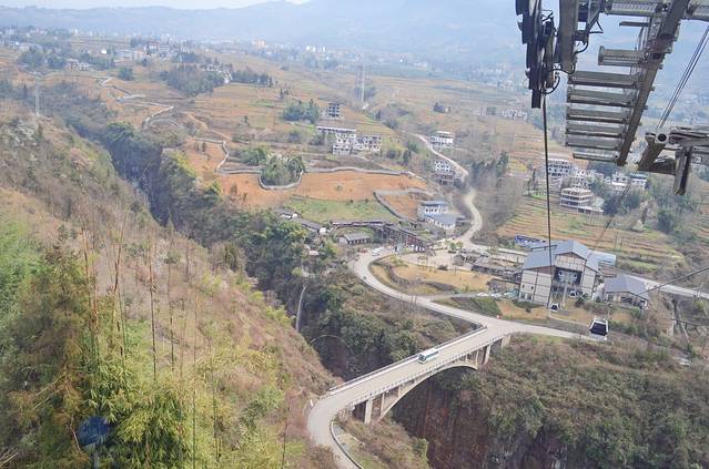 坐索道的途中能从空中俯瞰到 云龙 河地缝的奇观,这道地缝也被称为地球最美的伤痕。