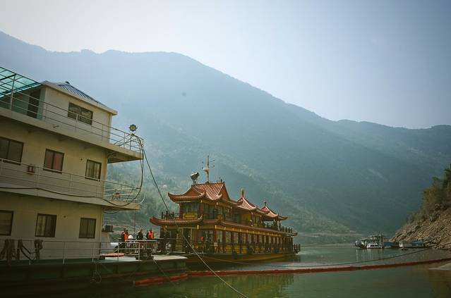 一般情况下,游客都是坐的类似轮渡样式的游船,我们很幸运,被安排乘坐了清江游览项目中档次最高的画舫,还在画舫上吃到了一顿全鱼宴,头一天的倦乏在这些优待下全部解除。