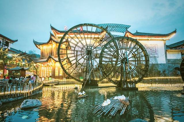当地导游说一定要感受一下女儿城的晚上,所以我们在这里一直待到了天黑,