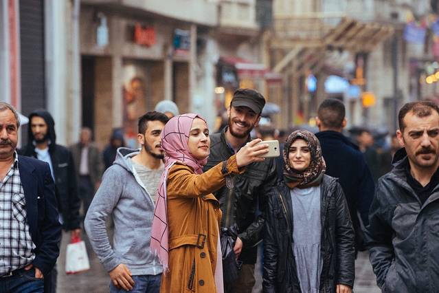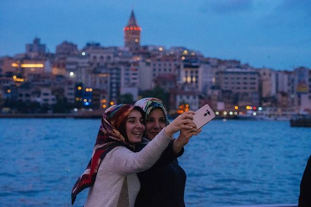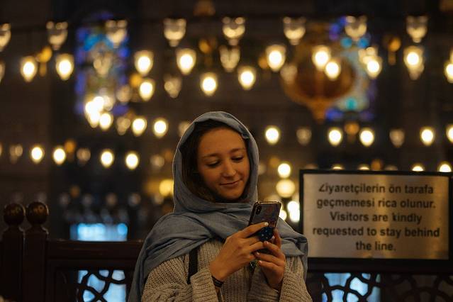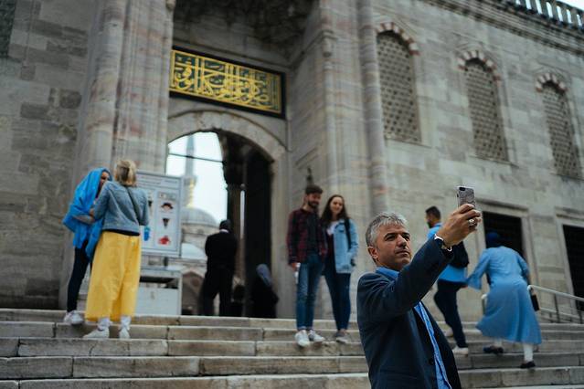 ▲ 苏莱曼 清真寺一个 俄罗斯 女游客正在微笑的欣赏自己美美的自拍瞬间