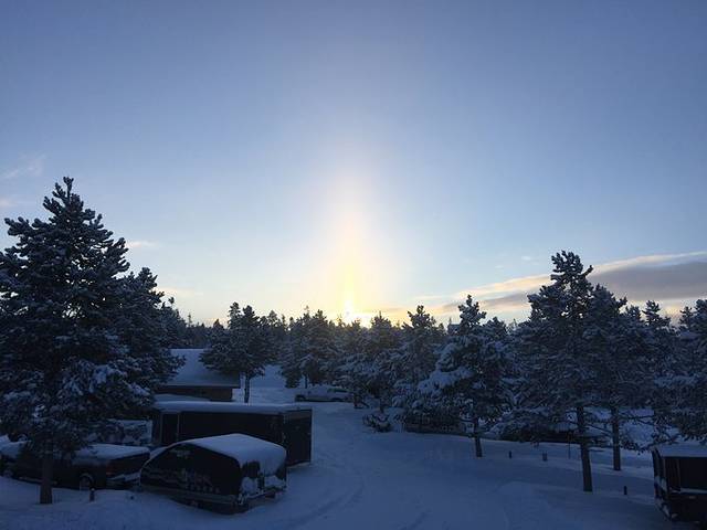 再往前走,就没有交通管制了,路面也都清理出来了,才稍微开快一点。当我们到达西黄石,已经是晚上5点多了,办完入住,天都黑了。