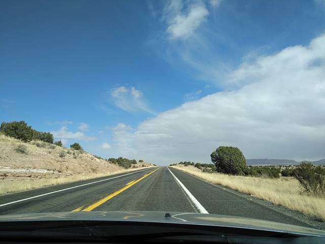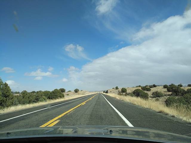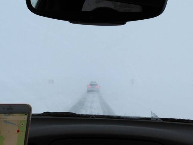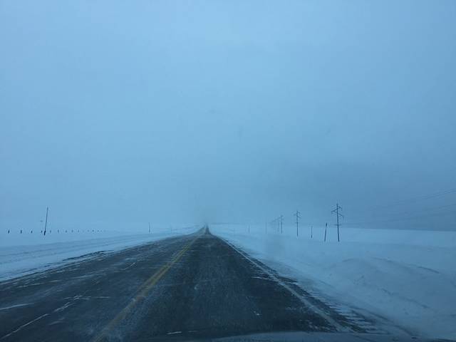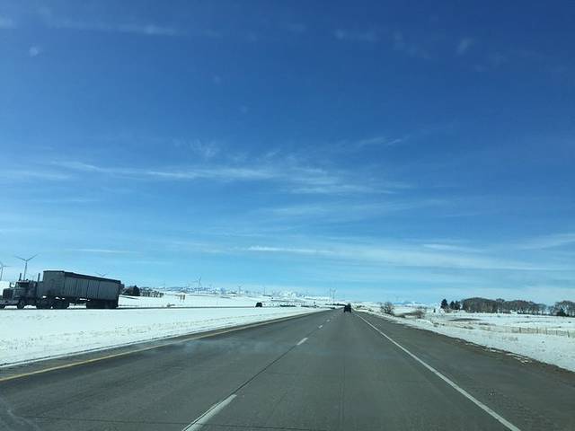 从西黄石出来,虽然开始遇到了一些风雪,但和之前几天比起来差的远,渐渐的露出了蓝天。路上的车也很少,打开定速巡航就使劲跑吧。