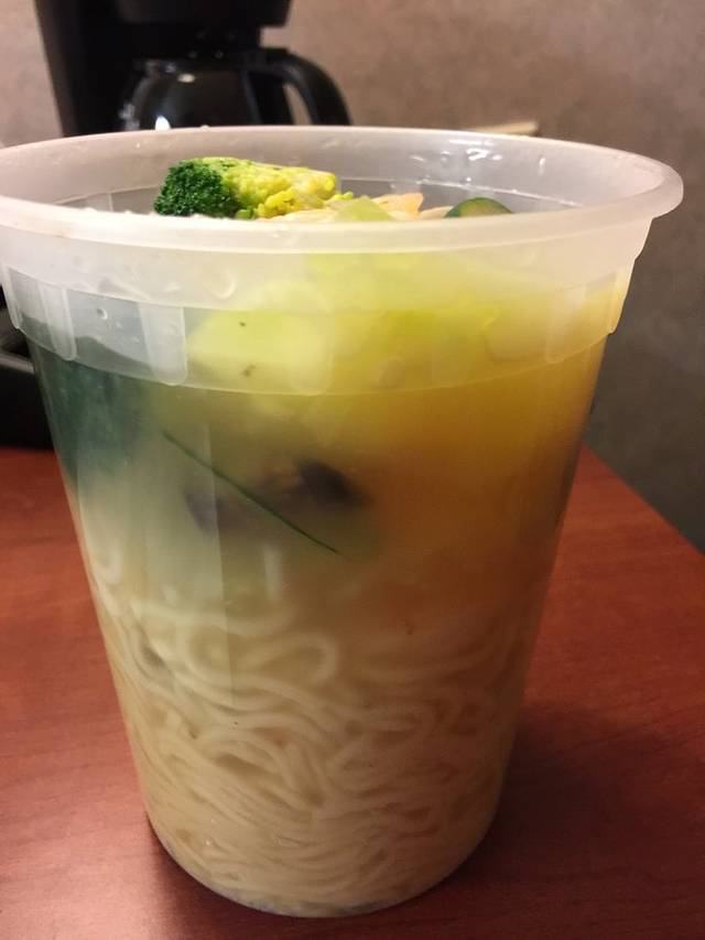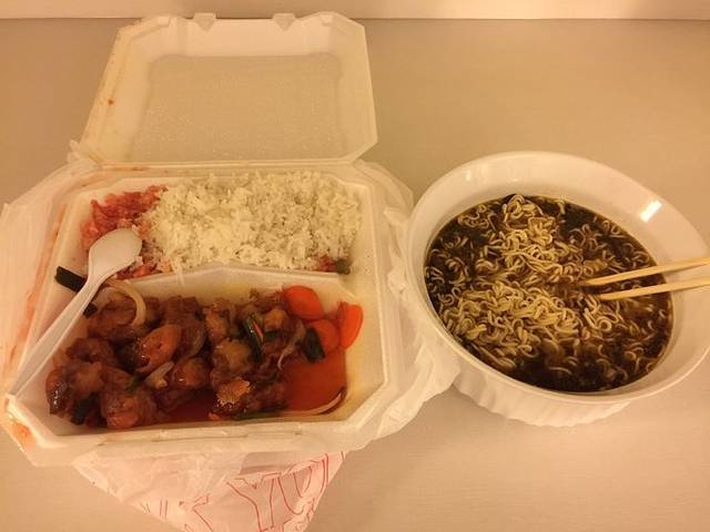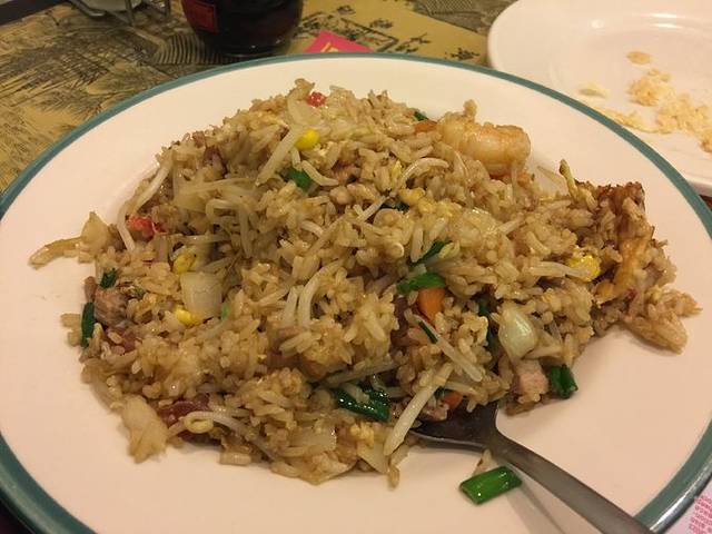 一份炒饭,比咕咾肉都贵。当时先让娃吃饱,我们打包回来。说实话,在美国真的会把咕咾肉吃腻的……还好我还有方便面。但这了的炒饭,已经比之前吃的炒饭都好吃了。