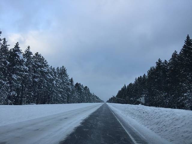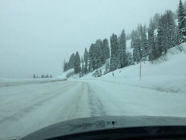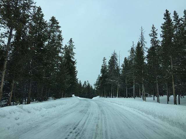从杰克逊镇到西黄石,都是这样的路。尽管清理过,但路面依然有雪,而且天上还一直下着大雪。