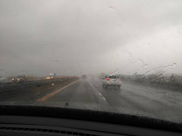 在返程回旧金山的路上,遇到这样的大雨,但是高速上的车依然没有减慢速度的意思。