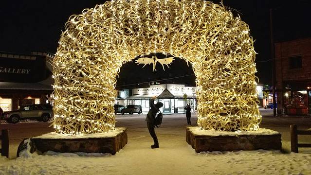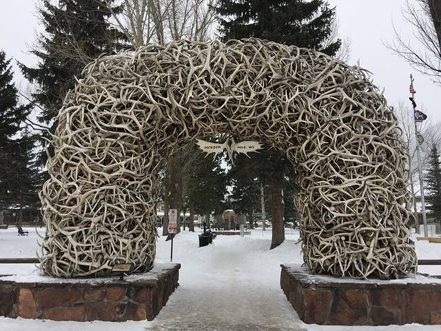 还回到杰克逊镇,出来买饭时,路过鹿角拱门公园拍的。公园非常小,也就几块篮球场那么大,但是每个角都有一座鹿角拱门,也就是4个大门,到了晚上在灯光效果非常非常美。在这里,是不允许割鹿角的,但是如果鹿死掉,是可以把鹿角捡回来的。光这么一个拱门,就得多少“鹿茸”啊!