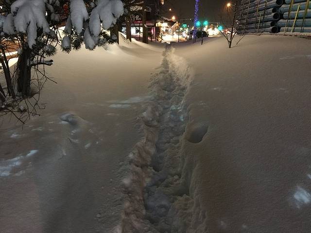 外甥打灯笼,照旧,是我去买饭。冬季西黄石很多店铺都休息了,沿着才出来的小径才能行走。雪至少到膝盖那么厚。