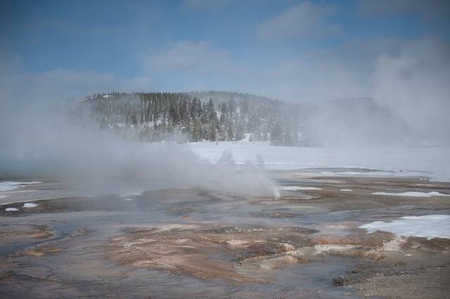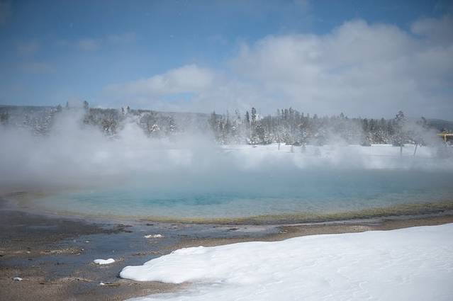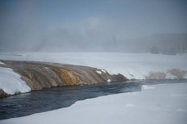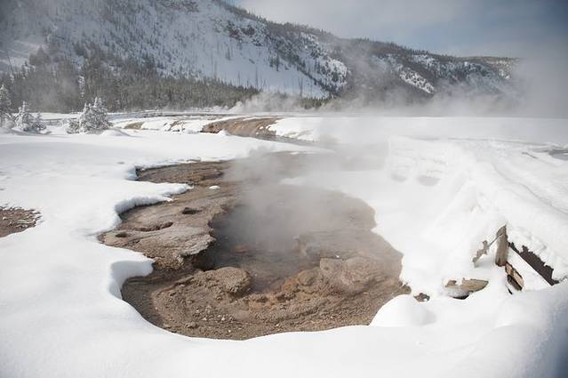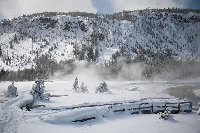 白雪和热泉,冬季的黄石,如梦幻一般。