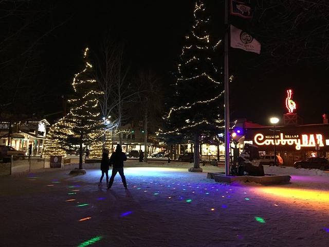 鹿角拱门公园里,有一块滑冰场,看到小情侣、小伙伴在这里滑冰消遣。有些类似于我们小时候玩的旱冰场,不过谁都可以去滑,不收费。