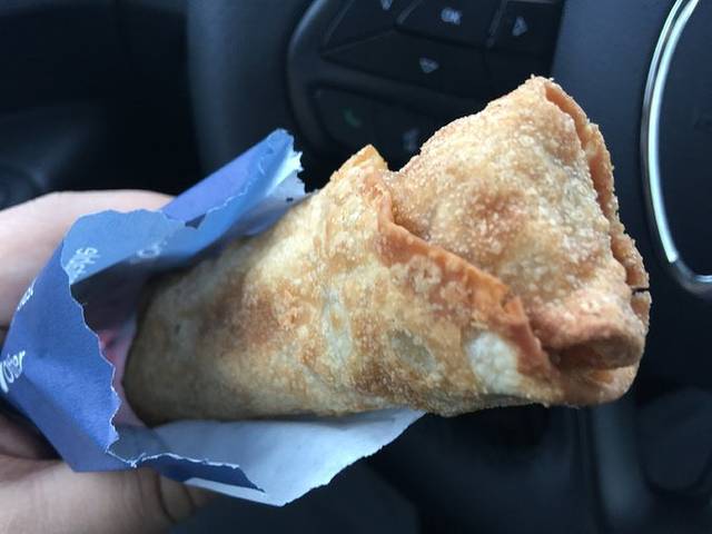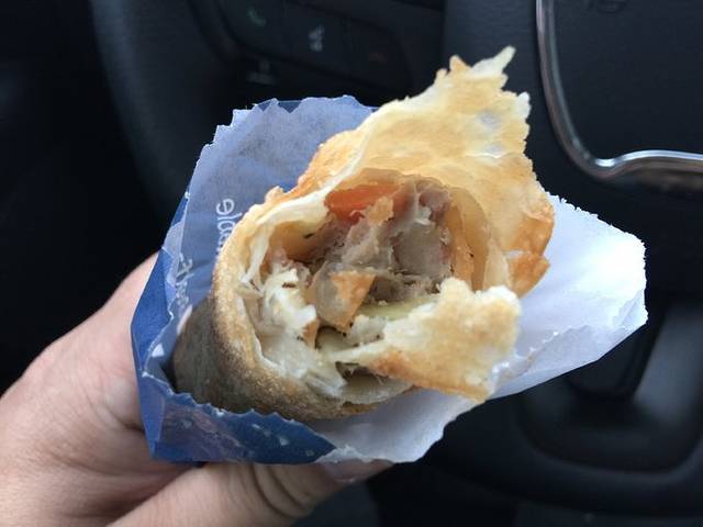 在阿什顿Ashton加油站买的累次春卷的吃的,菜肉鸡蛋馅,很好吃。一口气吃了3个,当午饭了。