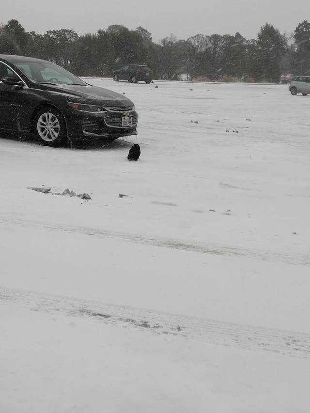 雪最大时,只能看到前车尾灯,周围一片白茫茫。控制车速,跟住前车,顺序行驶。
