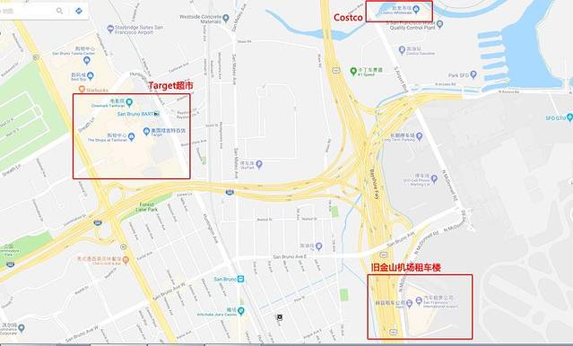 具体情况是,从旧金山机场出来,谷歌地图搜索,周围就有2个大超市。我们先去的Costco,但是这里是会员制,要先花100美金办个会员卡,门口有人要求出示会员卡,否则连门都不让进(牛大发了!)。看网上有朋友说,碰见华人可以商量跟他们借会员卡用。可惜,我们碰见两个香港人,都没有借我们用。再查,不远处还有一个Target商场,里面有超市,就直接奔过去了。