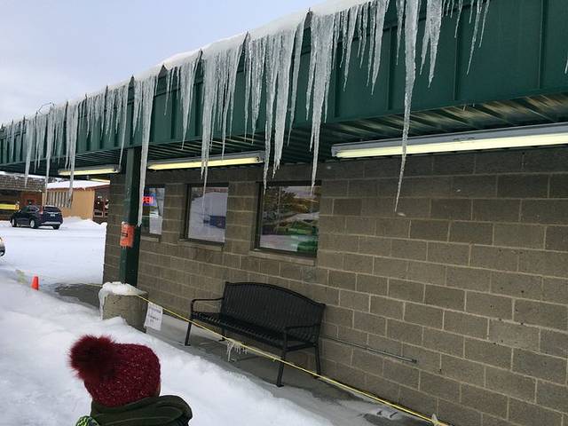 这是西黄石一家超市,大冰棱有1米多长。娃新鲜了半天,还想掰一个下来带回去!
