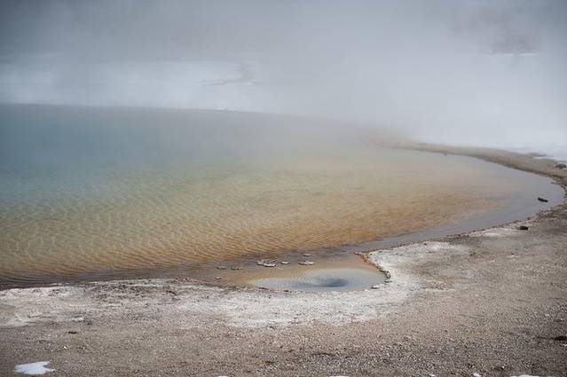 终于可以看热泉了,尽量沿着脚印走,不要出去,更不要尝试去碰热泉。这里热泉最高温度能达到150°。