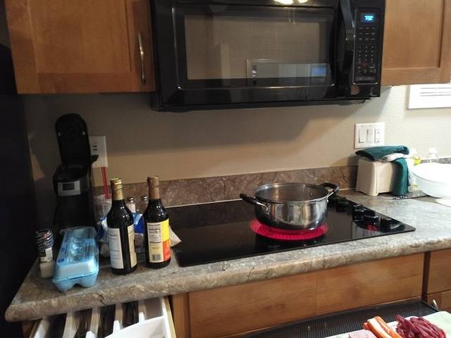 我们晚上9点多到的,工作人员已经下班了。打前台电话好久没人接,就在我们准备走的时候,回电话了 ,才给我们开门。入住很快,但到了房间发现没有灶台,又联系前台(她已经走了),好久才回电话,给我们换了一间房子。这回终于有灶台了,然而却没有锅!不想再大晚上麻烦人家了,或许美国人真的不爱自己做饭吧,我们本来打算做个茄子面,结果最后无奈改成了泡方便面。