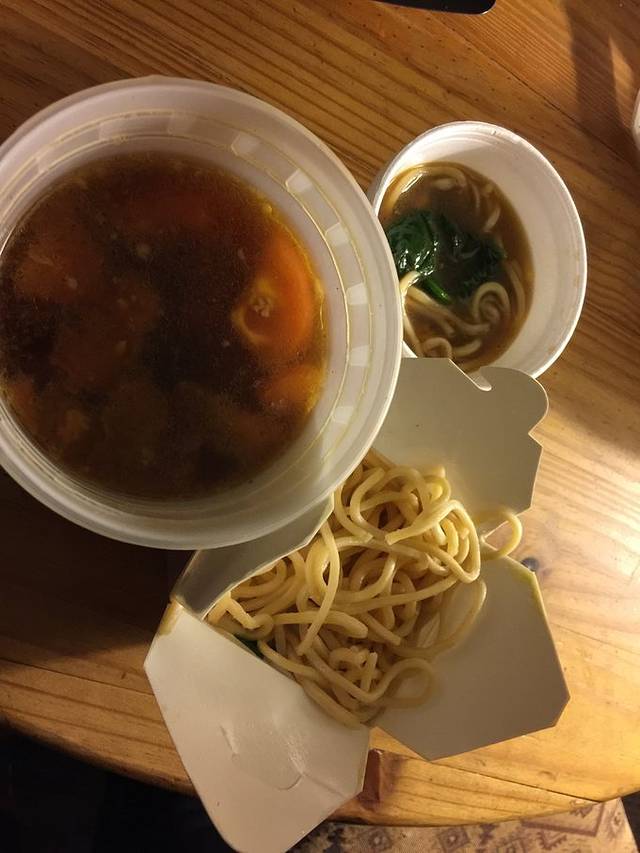“蒙古牛”和热汤面,前者是牛肉加辣椒和洋葱炒的,跟牛肉不要钱似得,给的巨多。热汤面是给娃吃的,多吃点菜,毕竟刚病好,明天好要进黄石。