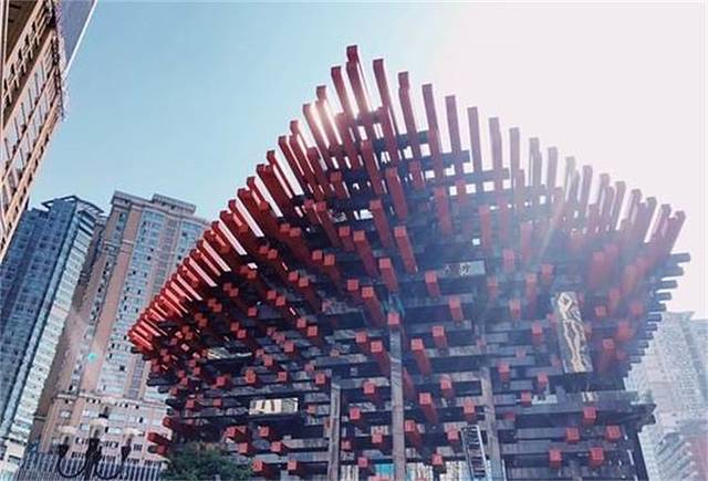 国泰艺术中心在解放碑广场的侧面,这是大戏院和美术馆的结合,颇有民族特色的风范,也体现了巴渝浓厚的地域文化。远看是一片火红的颜色,像极了一团团的篝火。