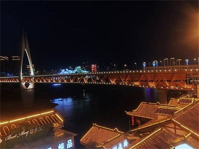 千厮门嘉陵江大桥仿佛不仅仅只是供车辆通过,也成了洪崖洞旁边的一处景点了,随手一拍就很漂亮~