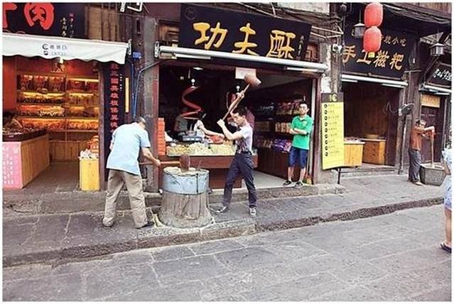 小吃一条街,各种各样的小吃都可以在磁器口找到了,街上的美食琳琅满目,还有很多现场制作的,有的店还可以让游客体验一下制作小吃的过程。