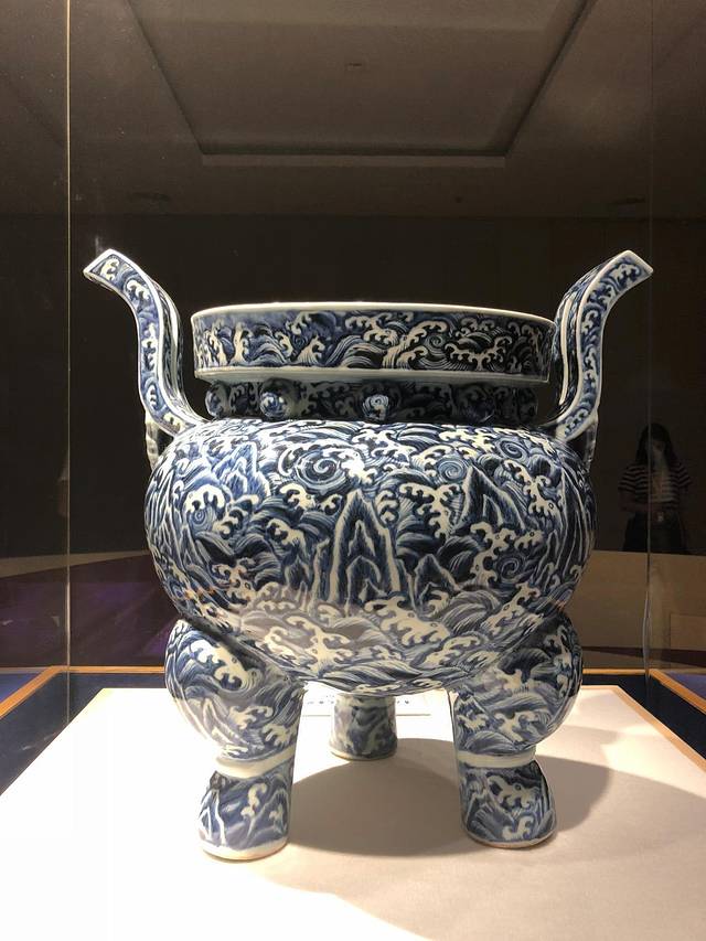 这可是镇院之宝——青花寿山福海纹瓷香炉。专门用一个展厅来展示的。绝对的VIP展品。据说价值四个亿。