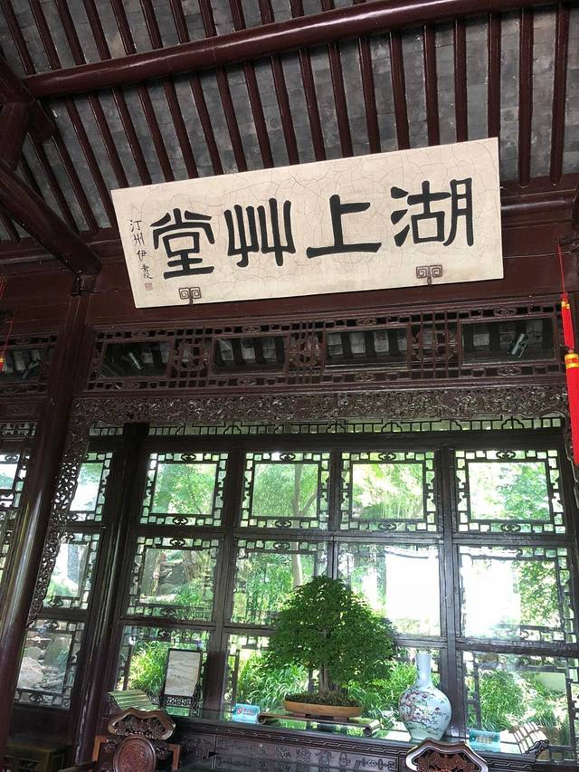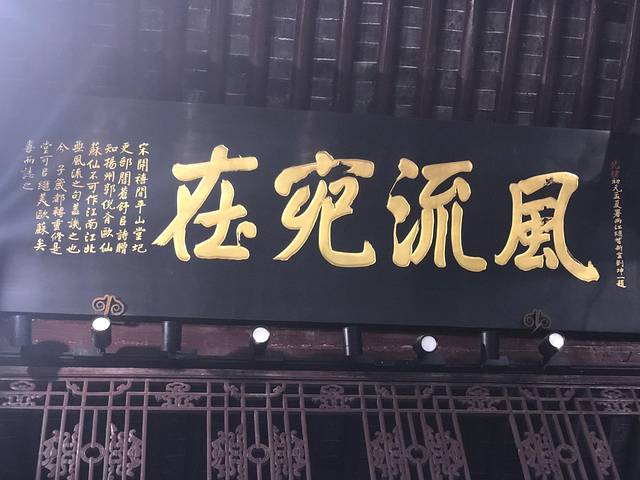 平山堂前“风流宛在”的匾额,出自清光绪初年两江总督刘坤一之手。这块匾的独特之处在于“流”字少一点,“在”字多一点,关于这看似的笔误,有一种解释是在劝诫后人“风流少一点,实在多一点”。但其实这也是书法的一种特殊写法,我们不是书法家,没有判断对错的资格,反而觉得,这“风流宛在”与欧阳修的风流儒雅、豪放达观的“文章太守”形象甚为贴切!不禁感叹古人的语言极简精妙!本以为扬州历史上有欧阳修和苏轼两位文豪的参与就已经浸润了深厚的文化底蕴了,可随着后来的参观一个个涌现而出的历史名人一次次刷新了我对这座古城的印象。
