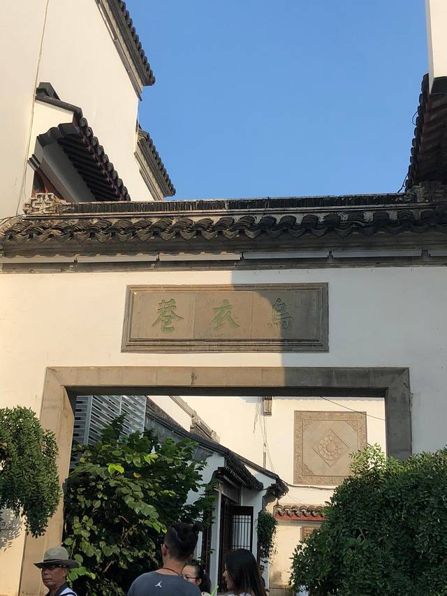 乌衣巷位于夫子庙西南数十米,是一条幽静狭小的巷子,原为东晋名相王导、谢安的宅院所在地。我和我的室友武老师特意买票进去参观了,小巷不大,虽然已然是现代翻修过的气息,但还是感觉很激动。毕竟这曾是瞻仰东晋名相、抒发思古幽情的地方。