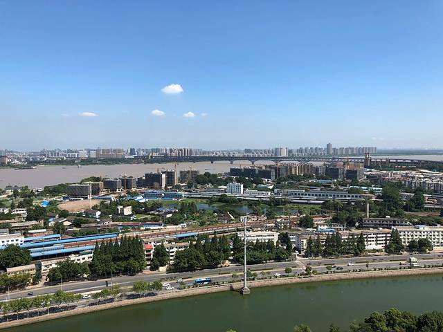登楼远眺长江大桥,天气状况不错,看到的景色也好。尤其是登楼后的凉风习习,格外清爽!